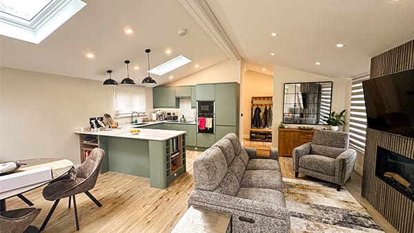 Use your mouse or put on a VR headset to navigate around this 360 walkthrough of this completed two bedroom Premier 6m x 13.5m Homelodge annexe